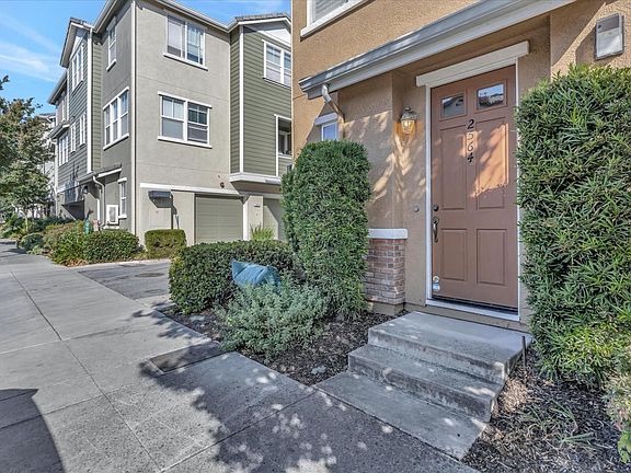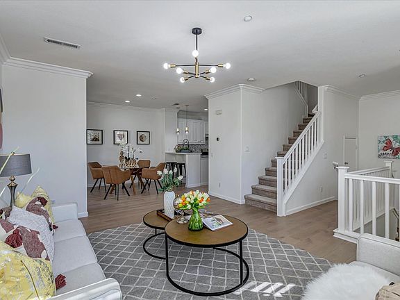 Immaculate and Morden corner unit in the desirable Baton Rouge community. Bright, open & spacious, this popular plan has plenty of upgrades and numerous picture windows. New interior paint. Formal living and dining areas with quality hard wood floor throughout. Open and functional kitchen with ample white wood cabinets, new expansive quartz counters & convenient breakfast bar, completed with stainless steel appliances. Convenient BBQ balcony off dining area. Generous master suite with large walk-in closet and spacious ensuite bath featuring dual-sink vanity. One hallway bedroom with an open view overlooking the mountains. New carpet floor in the bedrooms. Additional features to include luxurious window shutters throughout and EV charger in the garage. Convenient location with short commute to shoppings including Costco, Ranch 99 & H-mart. Walking distance to Target and Merryhill private school. Easy access to Bart, VTA & freeways 101/680.