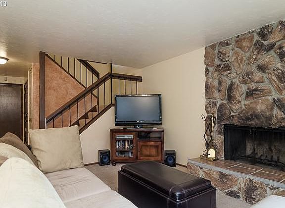 EXCELLENT TOWNHOUSE on quiet lane.Cozy living rm w/fireplce, dining rm w/patio slider,tile accents,ample storage.All appliances incl.2 car garage w/workbench.3rd bedrm closet is built-in desk space.Enjoy guest parking walking trails,wildlife,bus route,quality of life.