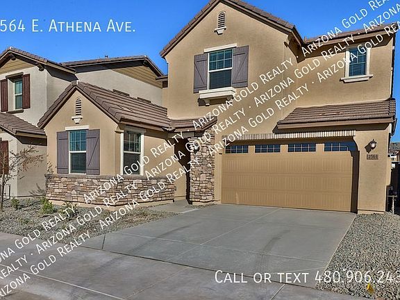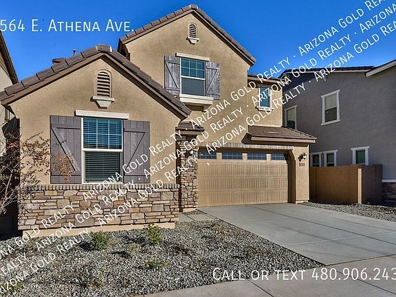 Attractive 4 bedroom / 2 bathroom home with a two car garage! Vaulted ceilings, ceiling fans, and a great split floor plan. The kitchen comes complete with appliances including refrigerator, kitchen island, upgraded countertops, and breakfast bar! Washer/Dryer included. The master bedroom features a walk-in closet plus and en suite bathroom with dual vanity and separate shower/tub. Relax under your covered patio and enjoy a fenced in yard and easy care desert landscaping. Enjoy a community pool and playground.