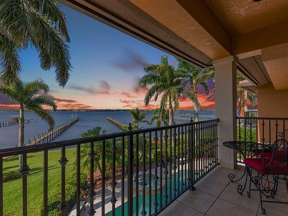 Magnificent 5 Bedroom/ 5 Full Bathroom custom home, built by St. Clair Builders! So well designed that ALL main house rooms have a. grand VIEW OF THE WIDE WATER! The Craftsmanship in this house must be seen! Two story cast stone gas fireplace, pillars and balustrades grace the polished marble floors! Disappearing pocket door wall fully opens the great room to the pool area! FIRST AND SECOND FLOOR MASTER SUITES! GUEST/CARETAKER SUITE with 2nd KITCHEN, near laundry and garage with separate entrance! 5 ZONE A/C and full house generator. Deep Pool & Spa with open view fenced yard. IMPACT GLASS DOORS AND WINDOWS and NO FLOOD ZONE!!! 110 Ft Water frontage. This BOATER'S DREAM HOME celebrates a GRAND POSITION on the ST. LUCIE RIVER! Enjoy rare SUNSET SKY over EAST COAST WATER!