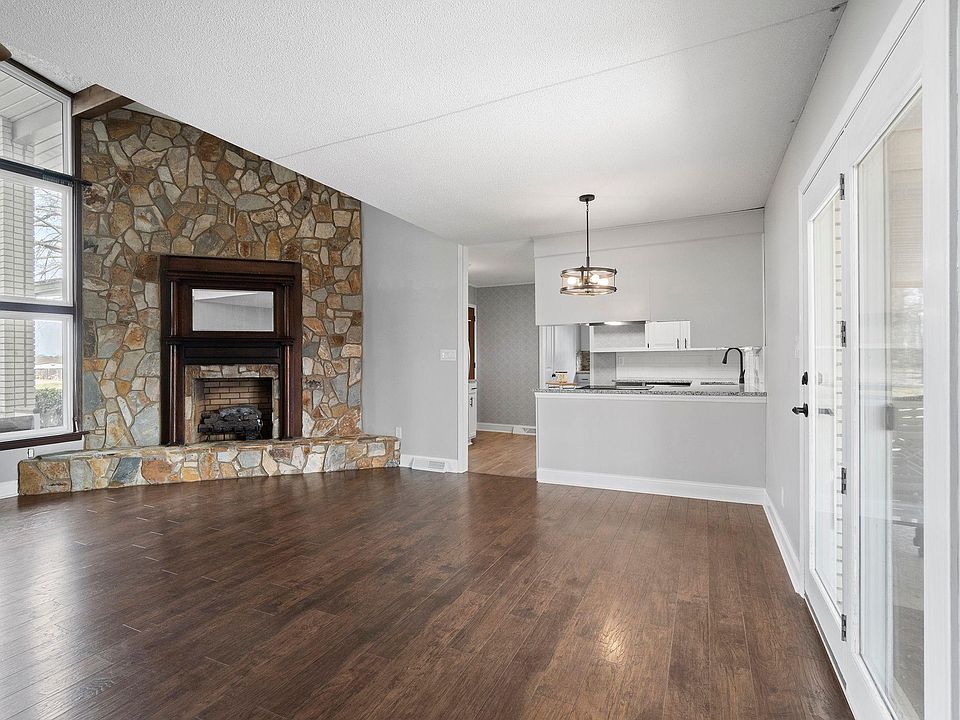Newly renovated, move in ready home with a adorable rocking chair front porch. When you enter the foyer you will appreciate the large open floor plan, the living room greets you with cathedral ceilings, large floor to ceiling windows and a beautiful stone fireplace. The kitchen boasts new granite countertops, new flooring, appliances and freshly painted cabinetry. Custome built pantry in the spacious laundry room. Entering the finished portion of the basement is like stepping back in time, complete with origional 70's carpet you will enjoy entertaining friends and family at the custome built wet bar with bar table and stools included!! Unfinished portion of the basement offers tons of storage, including a garage and workshop. The fenced in back yard is the perfect location for children or fur babies to play for hours while you relax on the covered back porch!