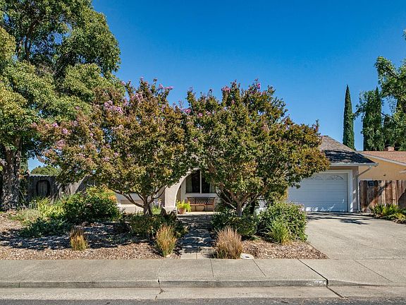 Pride of ownership shines in this charming home, ideally situated on a spacious corner lot in a well-established neighborhood. Easy freeway access. Close to shopping, schools and parks. Featuring 4 bedrooms and 2 full bathrooms with plenty of living space. This home offers both comfort and potential. Enjoy fresh exterior and interior paint, and a warm, welcoming living room with a cozy fireplace that flows into a functional kitchen and open family room/dining area with vaulted ceilings - perfect for everyday living or entertaining. The versatile layout includes 2 bedrooms and 1 full bathroom on the main level, with 2 additional bedrooms and a second bathroom upstairs-ideal for multi-generational living or guest space. Step outside to a large backyard complete with a deck for entertaining, dedicated garden spaces, surrounded by fruit trees including peach, apricot, pear, nectarine, orange, Meyer lemon, grapevines, and a vibrant and colorful landscaping throughout the year - a true gardener's delight. Room for an ADU or RV parking. Additional features include a 2-car garage with ample cabinets and shelving for storage, and a shed for all your outdoor tools. Move right in and update at your own pace - endless possibilities.