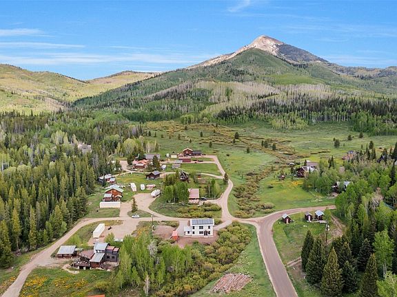 This spectacular brand-new build is located in the heart of the historic Hahn's Peak village and has jaw-dropping views of Hahn's Peak and the Mt. Zirkel Wilderness. This listing is for the home the adjacent lot with available well, within historical Hahn's Peak Village. Home boasts all the modern comforts and environmentally efficient features, many historical elements were integrated into the new build. Including professionally restored doors, pocket doors and hardware that is sprinkled throughout the home to preserve some of the old-world charm. This all-electric home has energy efficient features including a Solar Thermal heat system, a Miele washer and ventless dryer, and it has the capacity for an electric vehicle charger. Upon entering the home, you will be struck by the views seen through every window and the spacious, open concept feel with 9' ceilings, clean lines and loads of natural light. The kitchen highlights tall custom cherry cabinets, quartz countertops, Bosch appliances, and an induction range and oven. Open the French doors to a leveled area out back that could be a future stone patio and yard. If you are looking for more space the adjacent lot is also on the market and could be purchased to extend the property. All bedrooms are on the upper level, along with a lofted office space and an enchanting covered balcony that offers up iconic views. Down the road is the Hahn's Peak Cafe, True North Tavern and the Outpost Restaurant. The Sage Flats put-in at Steamboat Lake is less than a mile from the front door, providing lake access for fishing and boating. The area is renowned for snowmobiling, there are miles of groomed cross-country ski trails and in the summer the hiking, horseback riding, and biking are epic. Plus, it is just a quick 24-mile drive to all the amenities of Steamboat Springs. This home is looking for a new owner that enjoys all of the outdoor recreation in the area as well as the local history and folklore.