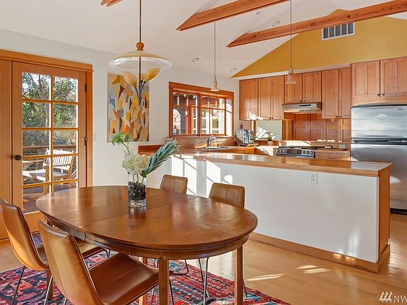 Watch the ships go by from your LR or back deck & enjoy the wonderful sunset views of Puget Sound & Tacoma. This light filled newer NW Contemporary home has cathedral ceilings, fir trim, & a detached shy 200 SF studio. Custom built to maximize privacy & views for a quiet, relaxing home. No neighbors in front or back. All utilities are updated or refurbished, it's clean, quiet, & warm. New:6 exterior fir doors; gas range & water heater; custom Murphy bed; front hall closets; gas FP refurbished.