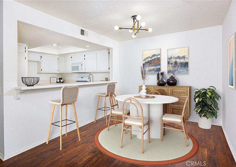 Corner Unit Single-Level Condo that has been beautifully maintained – a perfect blend of comfort, convenience, and California charm! Step inside and experience an inviting open layout highlighted by stylish laminate flooring and an abundance of natural light that flows throughout the home. The spacious living room offers the ideal space to relax or entertain, featuring a charming brick-surround fireplace complete with a classic mantle – perfect for cozy evenings or displaying your favorite décor. Adjacent to the living area, the dining space is designed for gatherings both large and small. It includes a versatile bar-top seating area, ideal for casual meals or mingling with guests while cooking. The kitchen is both functional and welcoming, offering durable tile countertops, ample cabinet storage, and a layout that encourages creativity for any home chef. Continue down the hallway to find a dedicated laundry area with extra storage – a rare and convenient feature in condo living. The generously sized primary bedroom offers a peaceful retreat, complemented by a beautifully remodeled bathroom that exudes modern elegance. Enjoy the best of outdoor living with a spacious front patio – perfect for basking in the Southern California sunshine, hosting summer barbecues, or simply unwinding at the end of the day. Additional features include central air conditioning, recessed lighting in the kitchen, a designated carport space, and in-unit laundry for added ease. As part of a well-maintained community, residents also enjoy access to resort-style amenities including a sparkling swimming pool and rejuvenating spa – perfect for relaxing on warm afternoons. Located in a prime area of Orange County, this home offers unbeatable convenience with proximity to top-rated schools, shopping centers, dining options, parks, and major freeways – making commuting a breeze and weekend adventures effortless. Don't miss your chance to own this exceptional home that truly has it all.