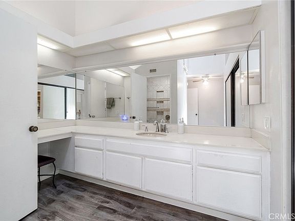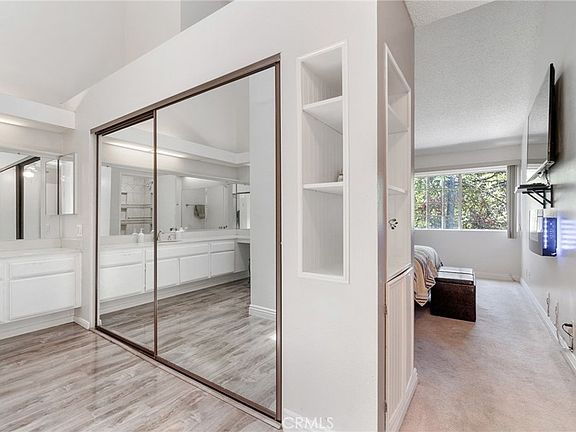 Modern cabinetryLaminate wood-style flooringAmple closet spaceFresh neutral tones