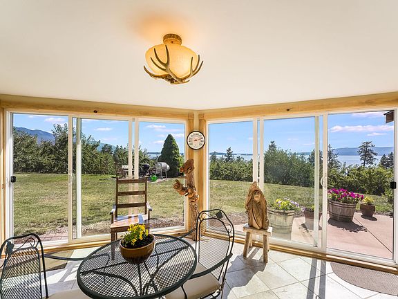 Introducing a very charming 1,560 SF farmhouse on 5.05 acres with stunning Flathead Lake and Mission Mountain views! Recently remodeled, this 3-bed, 2-bath home exudes cozy appeal with views from nearly every room, including the newly enclosed sunroom with magnificent sunrises and sunsets. In the heart of the Flathead Lake East Shore, famous for its cherries, is a thriving 1000 tree orchard replanted in 2012-2013 with 400 Lapins, 400 Sweethearts, along with 200 Skeena cherries in a UFO training system (6' spacing, 14' rows), plus a peach, a plum, an apple (Macintosh), pie cherries, raspberries, strawberries, and a lush garden space. Relax by the outdoor fire ring or on the covered patio while gazing at the lake and mountains. Nestled between Blue Bay and Yellow Bay parks for easy lake access, with Bigfork and Polson nearby for small-town charm and shopping. Enjoy the magnitude of Glacier National Park an hour to the north. See the VIDEO and the VIRTUAL TOUR with floorplans! Is this the Montana Dream that you've been searching for?