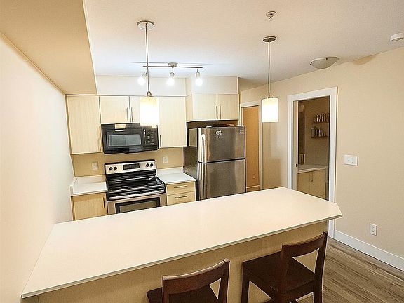 Welcome to Abacus Uptown in the heart of down town Abbotsford! Immac one bedroom, one bath & a den home. This condo offers a convenient & centrally located living experience. The open layout provides a perfect space to work from home or just relax after a long day. The kitchen features beautiful quartz counters and stainless steel appliances. Your condo comes with In suite laundry, underground parking and a storage locker. There's ample space for all your belongings. Fantastic location!! Within walking distance to historic downtown Abbotsford, where you'll find shops, restaurants, parks and lots of fun entertainment. Easy freeway access. Pet friendly building (one dog or two cats).Great investment opportunity. Presently rented and would love to stay.