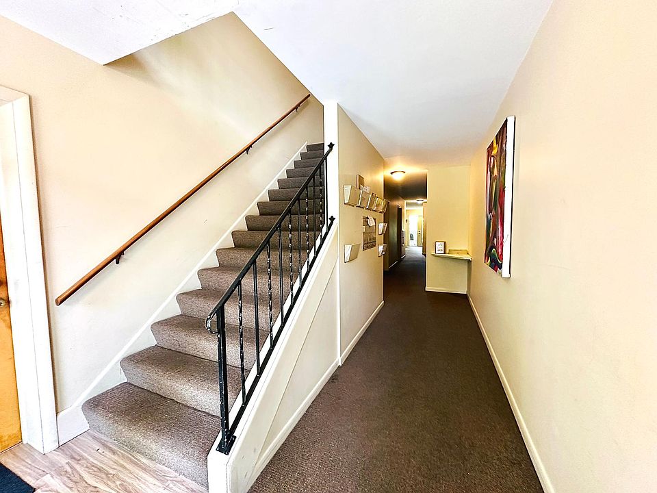 First floor unit boasting ample living and storage spaces. The open concept layout seamlessly connects the inviting living and dining areas, featuring a warm fireplace and captivating views. Hardwood floors adorn the space, adding a touch of elegance to every step.