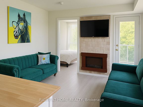 Corner unitPeaceful green viewsModern kitchenMovable islandCozy electric fireplaceSurrounded by parksWalking trails