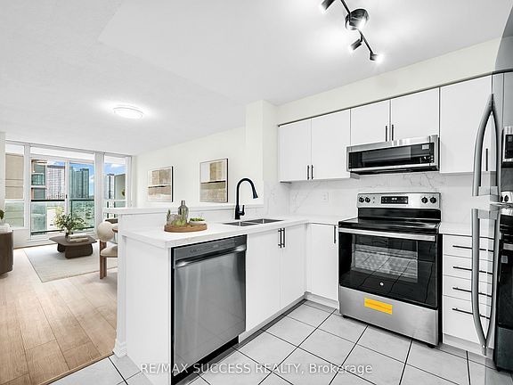Stunning fully upgraded 2 Bedroom, 2 Bathroom condo in sought-after Central Erin Mills. Bright open layout with large primary suite, walk-in closet & 4pc ensuite plus spacious 2nd Bedroom & full bath. Carpet-free with new hardwood, pot lights & fresh paint. Custom kitchen with quartz counters, backsplash, deep sink, high-end cabinetry & new SS appliances. Bathrooms with quartz vanities. New full-size stackable laundry. Sun-filled living/dining with walkout to balcony overlooking Mississauga Centre & forest. All utilities (heat, hydro, water) included in Condo fees. Luxury amenities: indoor pool, hot tub, sauna, 2 gyms, tennis, party & billiards rooms, library, rooftop terrace, concierge, 24hr gated security & lots of visitor parking. Steps to Erin Mills Town Centre, Credit Valley Hospital, transit & trails; minutes to top schools, parks, Hwys 403/407/QEW & GO.