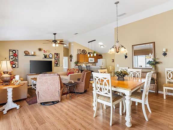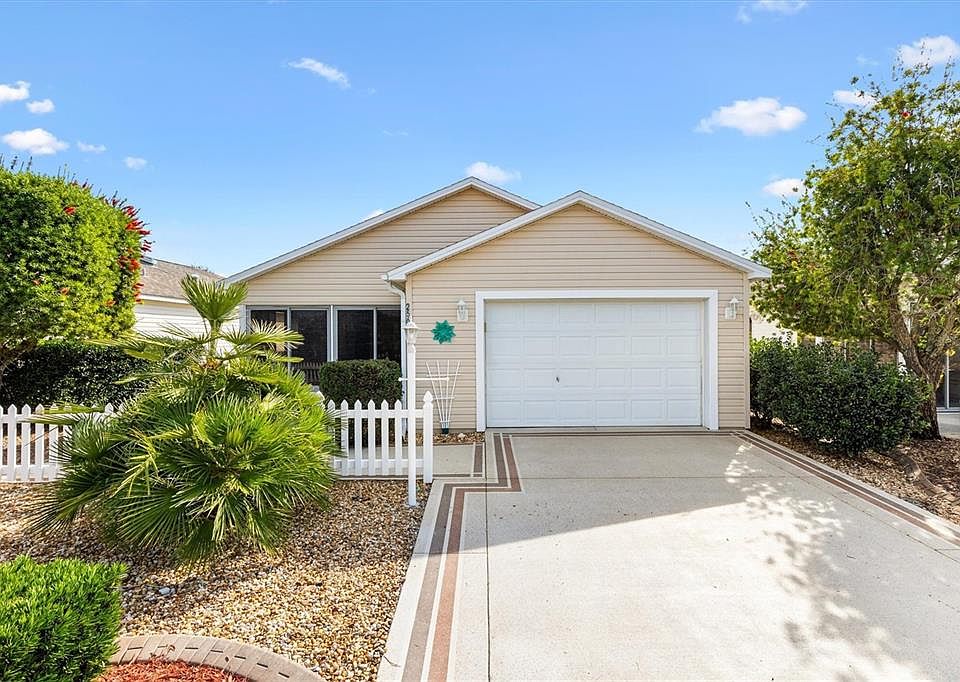 Welcome home to the Village of Hemingway! BOND PAID & TURN-KEY!! Step inside this beautiful Colony Patio Villa and you’ll be greeted by an inviting open floor plan with vaulted ceilings that make the space feel bright and airy. The combined living and dining area flows beautifully into a cheerful kitchen, complete with a breakfast bar, newer dishwasher, washer and refrigerator. The home also features 3 solar tubes to bring in wonderful natural light and plantation shutters. The spacious master suite retreat, features vaulted ceilings, room for a king-sized bed, a generous walk-in closet, and a private en suite bathroom. Gorgeous laminate flooring runs throughout the living, dining and all bedroom areas giving the home a warm and modern touch. You’ll love the convenience of the 1.5-car garage—perfect for your car and golf cart. The enclosed lanai, with its tile flooring and acrylic sliders, is a cozy spot to relax or entertain year-round. Or step outside to the large patio, ideal for sipping your morning coffee or enjoying an evening with friends. Recent updates mean you can move in with confidence: NewRoof 2022, HVAC 2019, and hot water heater 2022, painted drive and patio. And the location couldn’t be better! You’re 2 blocks from the Hemingway Neighborhood Pool & Postal Station, a quick drive from Lake Sumter Landing and Brownwood Paddock Square, where you’ll find nightly entertainment, delicious dining, and great shopping. Golf lovers will appreciate the nearby executive courses—Truman, Roosevelt, Bogart, and Bacall—and Havana Championship Golf & Country Club is less than a mile away. Colony Cottage and Seabreeze recreation centers are also just minutes from home as well as Colony Shopping Plaza & Neighborhood Walmart, doctors and shopping. All of this and ready for you to move in. Just bring your toothbrush. Call today to see this beautiful home before it is gone.