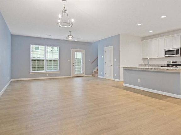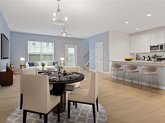 This stunning luxury townhome features an open floor plan with a gourmet kitchen boasting granite countertops, stainless steel appliances, and a large island that flows into spacious living and dining areas. Enjoy LVP flooring on the first level, cozy carpet upstairs, and a spa-inspired primary suite with a walk-in closet and tiled shower. Two additional bedrooms, a convenient laundry room, a private fenced patio, and a two-car garage add comfort and function. Located minutes from I-64 with access to community amenities including a pool, fitness center, and clubhouse, this home offers the perfect blend of style, convenience, and modern living.