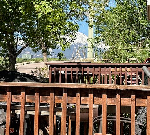 This charming 2-bedroom, 2-bathroom condo offers a stunning view of Pikes Peak off the back deck and a spacious two-level layout. Enjoy an updated kitchen with modern finishes, two assigned parking spaces, and a prime location just minutes from shops and downtown. Perfect for comfortable living with convenience and scenery at your doorstep. Pets welcome.