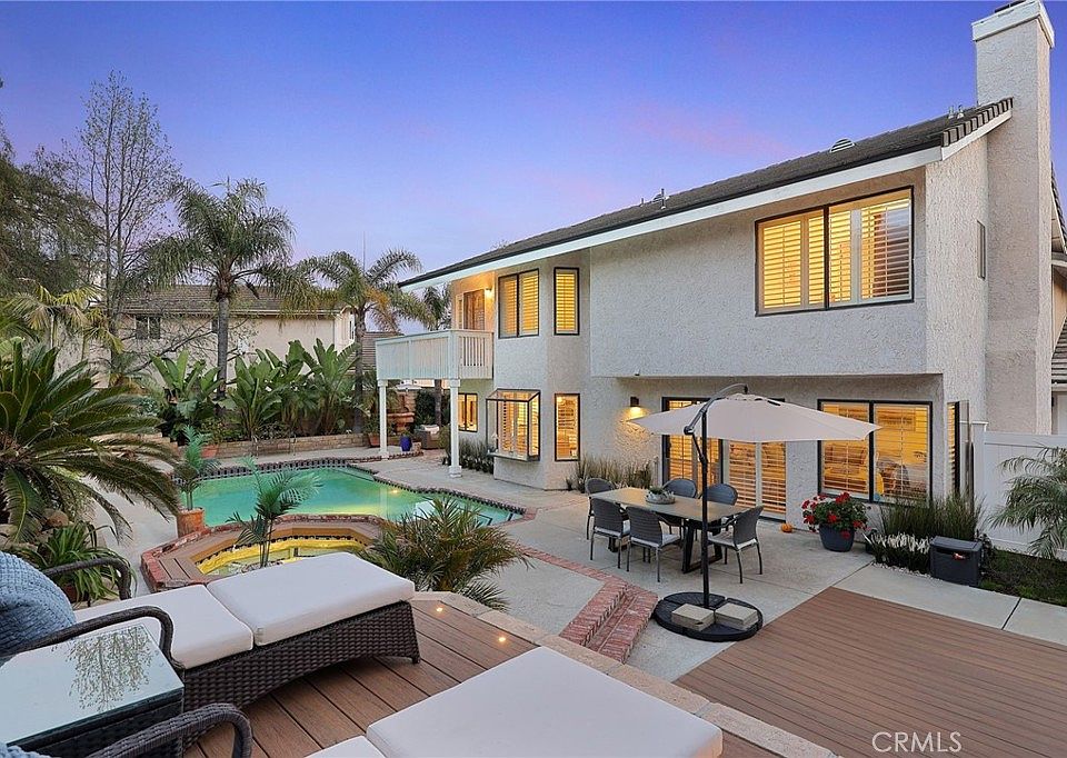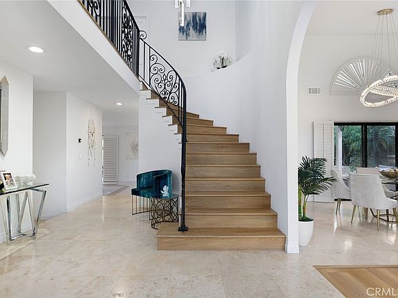 New Price!!! Beyond gorgeous and totally updated to perfection! This exquisite 5 bedroom 3 bathroom home is located in the highly desirable" Brock Collection" in close proximity to award winning Lang Elementary School and offers luxury living at its finest. The grand entry with graceful staircase and custom designed wrought iron railing introduces the spacious living room bathed in natural light through large windows and complemented by fireplace, newer luxury vinyl plank flooring and adjacent to the formal dining area. The remodeled kitchen is a culinary delight with large center island with ample seating, an abundance of cabinets, quartz counters, stainless steel appliances, newer lighting, breakfast eating area and open to the warm and inviting family room, perfect for relaxation and entertaining. This desirable floorplan offers a bedroom and updated bathroom and laundry room on the first level. The beautiful primary suite includes a luxurious spa-like bathroom with separate large shower, stand alone tub, dual sink vanity, custom designed closet and large balcony for relaxation and enjoying the views. A generously proportioned bonus room/bedroom plus two additional bedrooms and bath complete the upstairs. A highlight of the property is the inviting backyard, newly landscaped with lush trees and foliage, a swimmers pool and spa, multiple patios, deck, and fountains making this ideal for enjoying and entertaining. The direct access three car garage has finished walls and epoxy flooring. Very low HOA fees! Don't miss this incredible opportunity to make this this fabulous home your own and enjoy the nearby restaurants, shopping, parks and its desirable lifestyle.