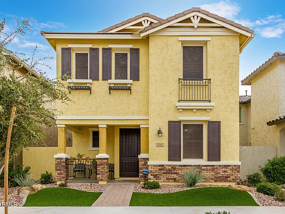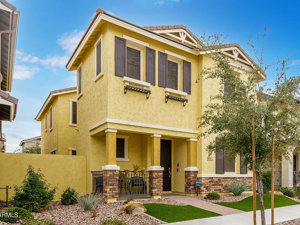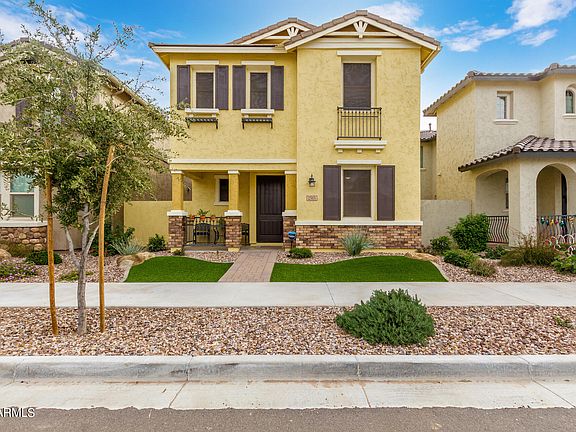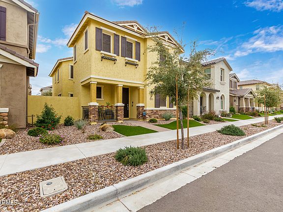 Great opportunity to live in a desirable two-story gem in Cooley Station by Fulton Homes! Over $40k in upgrades from base model! This home is only 2 years old, and its modern interior offers wood-look tile floors in main/wet areas, custom paint finishes, and bountiful natural light. The 1st level provides an open den ideal for a workspace, a powder room, and a great room w/a magazine-cover kitchen boasting a center island w/breakfast bar, upgraded GE Cafe SS appliances, granite counters, white raised panel cabinets, a pantry, recessed & pendant lighting, and glossy tile backsplash. Upstairs, you'll find 4 sizable bedrooms, a spacious laundry room, and a loft for an entertainment area. The main bedroom exhibits a private bathroom w/dual sinks and a walk-in closet. Hardscaped sideyard with pavers offers lots of shade and low maintenance landscape, and HOA covers front/backyard landscapes. Two full parking spaces in driveway behind rear garage with alley access! Garage also includes a ceiling storage rack and a whole home water softener system. Minutes away from and walking distance to several neighborhood parks, walking paths, 2 aquatic centers, shops, restaurants, grocery store, and brand new Verde at Cooley Station.