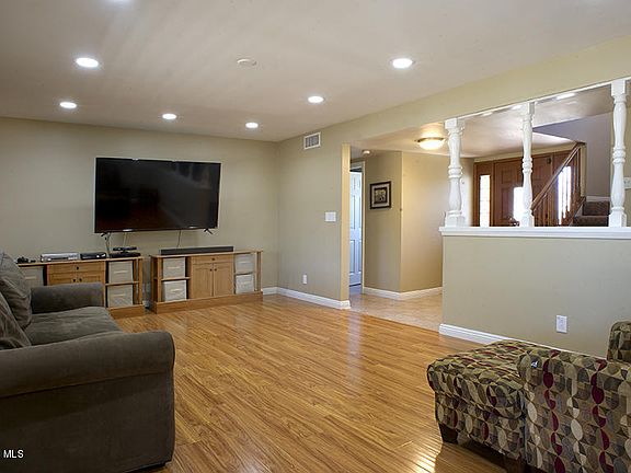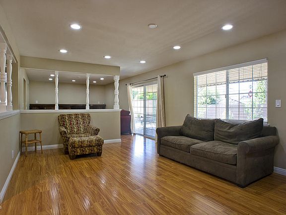 Amazing opportunity for a move in ready 2408 square foot, 4 bedroom and 3 bath home in central Simi Valley. This spacious floor plan with flowing spaces is great for entertaining. Downstairs bedroom with full bath can be a playroom, home office or in laws suite. Master bedroom opened up to secondary bedroom next to it could be use for a nursery or home office. Light and bright throughout each room has recessed lighting and is ready for ceiling fans to be installed. Laminate and tile flooring downstairs and new carpet upstairs throughout. Fresh neutral paint, bright white baseboards and all new interior doors. Backyard is large and great place for summer night BBQs. Patio cover runs the length of the house creating ample shade to relax and play under. Solar panels are leased for $89 a month