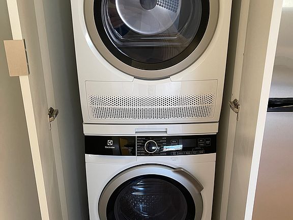 Stone countertopNew glass tile backsplashStainless kitchen appliancesIn-suite washer and dryerAir conditioning unit