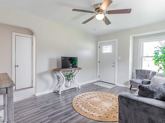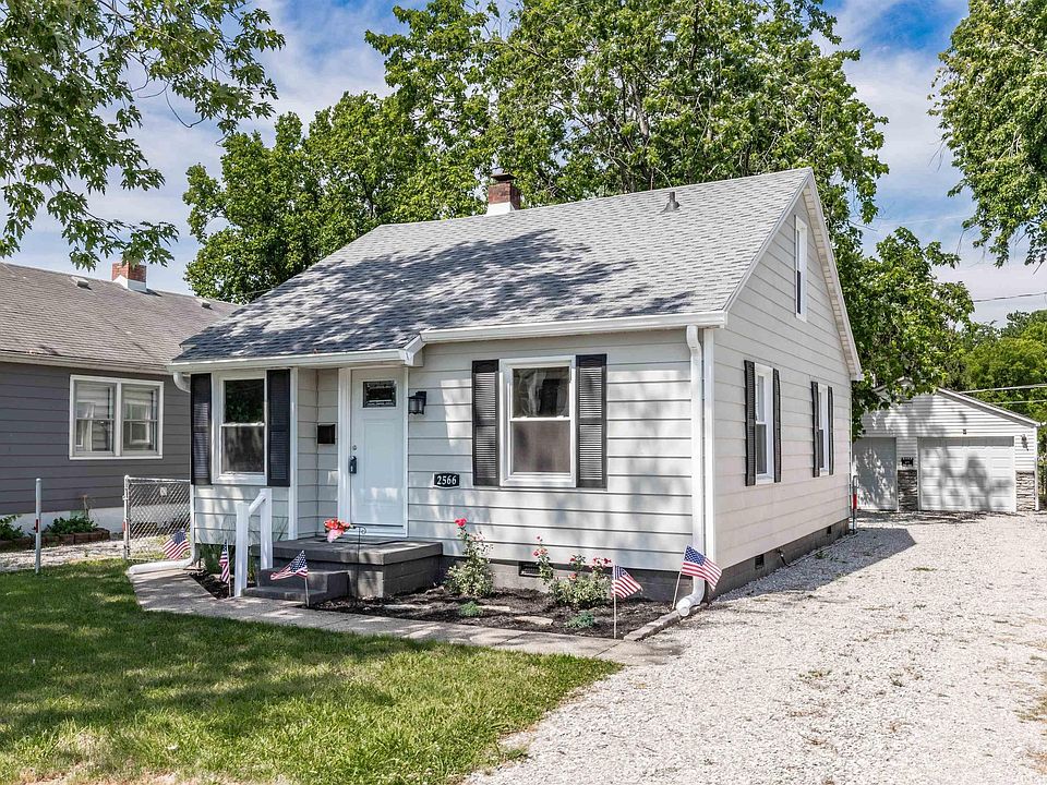Cute as a button & Move-in ready! New roof, gutters, soffits, a/c, furnace, water heater, electric and way much more. Seller has transformed and renovated this 2 bedroom, 1 bath home w/ a 2.5 detached garage. Ready for you to call home. New flooring throughout including laminate flooring in living room, tile in kitchen & bath, plus new carpet in bedrooms. New doors inside and out, white trim, new kitchen cabinets, all new bathroom, freshly painted , & fenced yard. There is a full walk up attic for storage plus 2 new garage doors. New electric, gas lines, some new plumbing, vents for crawl space, and new vapor barrier. Freshly painted exterior & ALL NEW windows. Nice place to sit and relax outside w/ fresh new landscaping added in front and back of home. Low taxes , utilities, and Immediate possession. Neutral throughout. Refrigerator, electric range, microwave, & new disposal. Plenty of parking and easy access to shopping, restaurants, and church just across street. Not much has not been touched. Seller is licensed realtor. Allow 24 hours response time to all offers with seller reserving the right to accept prior to. Garage sold in "as is" condition".
