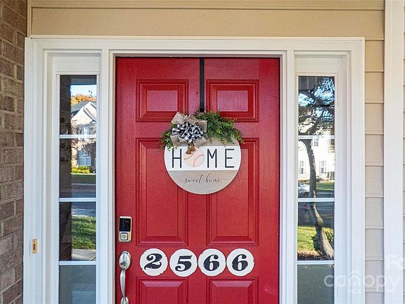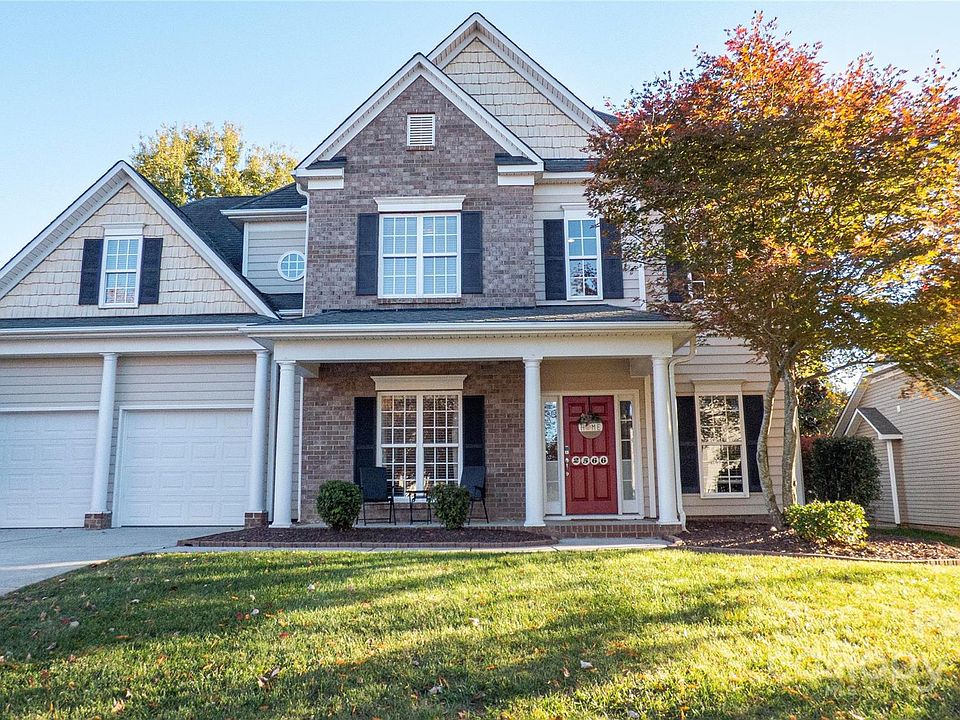 Welcome to this beautifully maintained home that blends comfortable living with thoughtful design details throughout. A covered front porch invites you inside, where a bright two-story foyer opens to spacious living areas filled with natural light. The main level features wide vinyl plank flooring and two-piece crown molding for a cohesive, stylish look. The great room, highlighted by a gas fireplace, built-in bookshelves, and dual ceiling fans, flows seamlessly into the eat-in kitchen, creating an inviting open-concept layout. The kitchen offers solid surface countertops, tile backsplash, a pantry, and a refrigerator that conveys with the home. The large dining room offers an elegant dining option while the breakfast area off the kitchen features a three-panel glass sliding door (two panels are operational) that opens to a concrete patio to the fully fenced, private backyard backed by mature trees. A large guest bedroom and a full bath on the main floor provides flexibility for visitors or multi-generational living. The hall from the garage entry features board-and-batten trim with hooks for daily essentials, while the garage offers sealed flooring and built-in shelving for additional storage. Upstairs you will find a huge bonus room—currently styled as a theater room complete with blackout drapes and color-changing lighting to create an immersive viewing experience. The primary suite features a tray ceiling, two-piece crown molding, a decorative niche, and a ceiling fan. The primary bath includes a separate soaking tub, an enlarged walk-in shower with bench, a private water closet, and a large walk-in closet with walk-in attic access for convenient storage. One of the two secondary bedrooms upstairs has direct access to the hall bath, which offers dual sinks and a linen closet. The laundry room is equipped with an included washer and dryer, built-in cabinetry, and a sliding barn door for a stylish touch. This home offers a comfortable floor plan, flexible living spaces, and charming details inside and out, all in the desirable neighborhood of Laurel Park - offering a clubhouse, two pools, pond, playground, and tennis courts. Located about 5 minutes from I-85 and the shopping and restaurants offered at the Afton shopping centers.