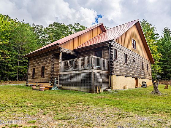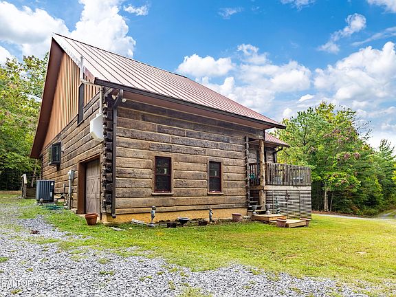 800 Feet and 5 + acres on the Cherokee National Forest in Coker Creek TN. This extravagant 2247 sq ft. custom designed home has Brazilian Cherry flooring, Pella windows and doors, a standig seam metal roof, the primary en suite is on the main level, find the surprise loft office study, a secret hideaway, a second office with its own loft, and granite cherry cabinet kitchen. Everywhere you look is eye candy in design and style. The cabin is sided with concrete logs with virtually no maintaince and inside it has spray foam insulation to keep the utulity cost low. Two fireplaces, one in the primary bedroom has three panes of glass, see the fire flicker, then drift off to sleep. This cabin has a 26' tall great room and looks like it was made as an English manor house...it sings tradition and cosiness. VEry seldom does a home come on the market with such exquisite taste and design imagination.