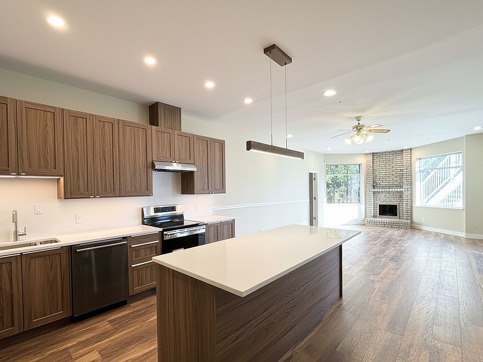Don't miss this opportunity to rent a bright, fully renovated 3-bedroom, 2-bathroom home with high ceilings, an open-concept layout, and a large private patio and yard perfect for families. This like-new suite features brand-new paint, flooring, lighting, and kitchen, along with new appliances (including fridge and stove), offering a modern and comfortable living experience. Enjoy generous living and dining areas with large windows that bring in abundant natural light, plus a master bedroom with en-suite bathroom for added privacy. A dedicated one-car garage is available for this suite. Nestled in a quiet, family-oriented neighbourhood, you'll enjoy both privacy and comfort while being just a short drive from schools, parks, shopping, and other everyday conveniences
