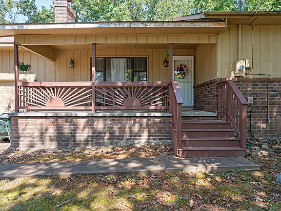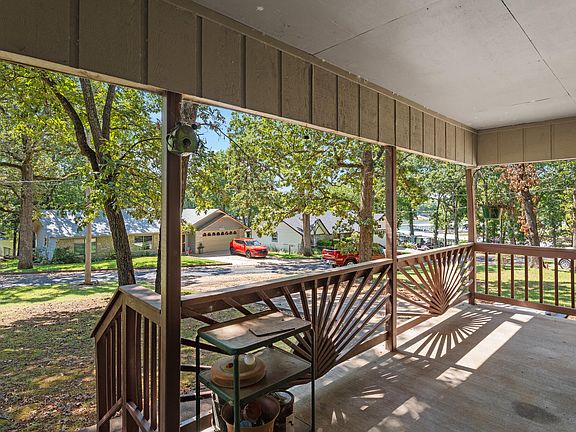 Covered front porchRoomy yardLake viewsBrick wood-burning fireplaceLarge back deck