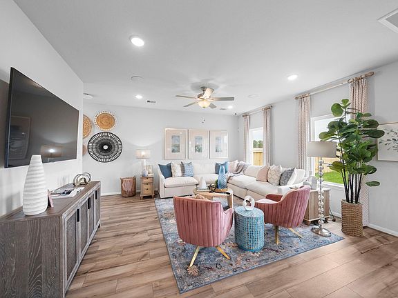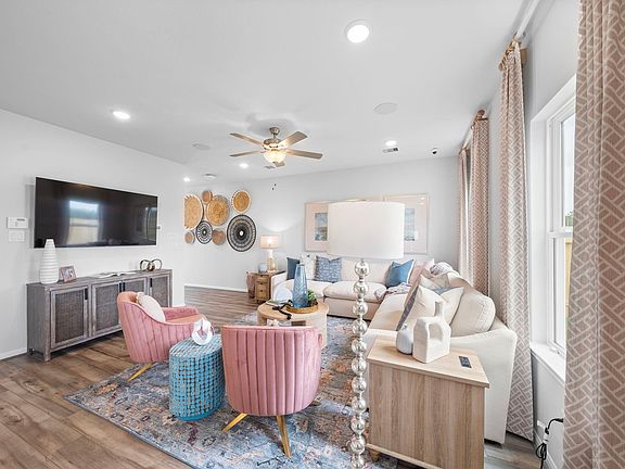 MOVE-IN READY! This stunning Trinity F previous model home in Hill & Dale Ranch showcases premium quartz countertops, luxury LVP flooring, & elegant carpet throughout. Originally a Davidson Homes model home, this two-story gem features an open-concept eat-in kitchen flowing seamlessly into the spacious family room - perfect for entertaining & daily living. Upstairs, discover the primary suite with large closet, plus three additional beds & another full bath. Convenience continues with second-floor laundry & a generous three-car garage. Beautiful drapery included! Located in a prime, fast-growing area with convenient freeway access, nearby shopping & dining, plus excellent schools within 6 miles.