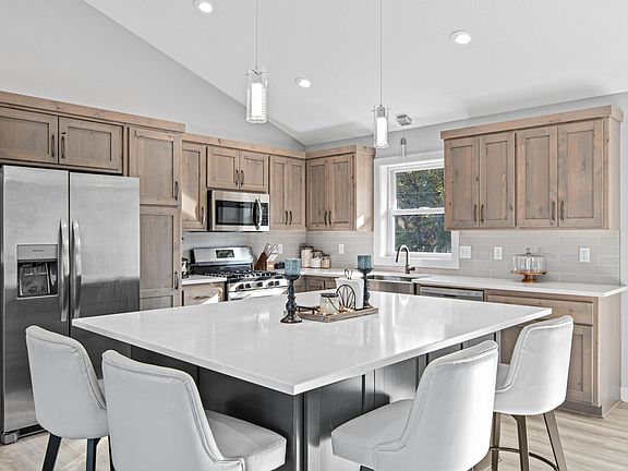 This spacious home features 4 bedrooms and 3 full bathrooms, offering the perfect blend of luxury and comfort. The kitchen boasts gorgeous granite countertops, stainless steel appliances with an extra deep sink and a large island for gatherings. The kitchen flows into the dining area that has a sliding glass door out to a future deck. The living room has a gas fireplace and vaulted ceilings. There is main-floor laundry with an LG washer and dryer.