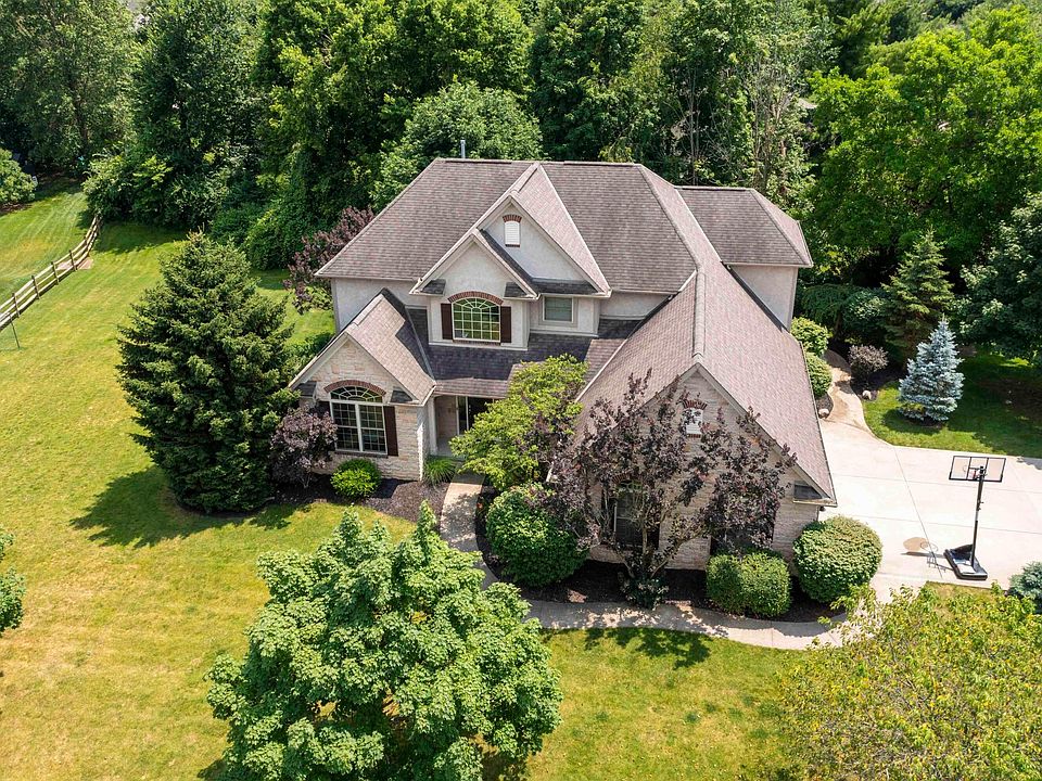 **OPEN HOUSE 9/1 from 10am-Noon** Beautiful home on a large corner lot in The Shores, one of the most sought after communities in Lewis Center. You'll love the custom woodwork throughout the house and the large eat-in kitchen with angled island and bay window. The finished basement includes a custom-built bar, workout room, sauna and lots of storage space. The second floor owner's suite features a recessed ceiling, large en suite bathroom and huge walk-in closet. Close proximity to Olentangy schools, dining and entertainment at Evans Farm and outdoor fun at Alum Creek. Primary bedroom furniture negotiable.