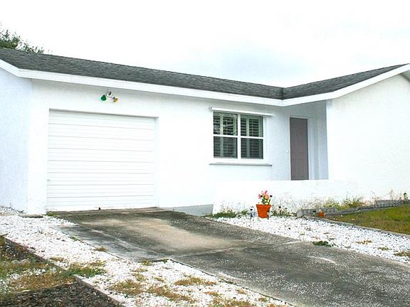 Welcome to this delightful 2-bedroom, 1-bath home perfectly situated on a spacious corner lot in the peaceful Hilltop Grove Estates community. Step inside to find a warm and inviting layout with plantation shutters throughout, adding a touch of Southern charm and privacy. The kitchen features a brand-new dishwasher and offers plenty of space for everyday cooking and entertaining. This home was originally built with a one-car garage that has since been enclosed to provide additional storage space. The area can easily be converted back to a functional garage if desired. This home has been well maintained with important updates, including a new HVAC system installed in 2014 and partial window replacements in 2009, providing added comfort and efficiency. With its prime corner location, this home is a wonderful opportunity for first-time buyers, downsizers, or anyone seeking a cozy Florida retreat.