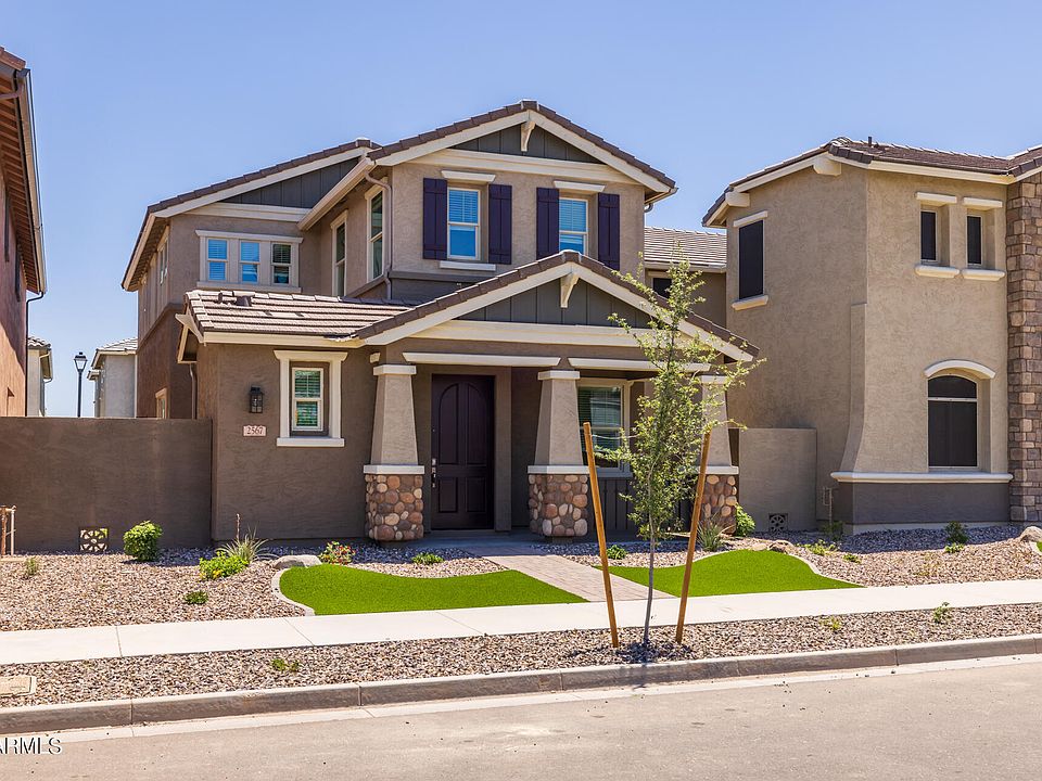 Beautiful newly constructed 1843 sf Californian plan with 3 BR and 2.5 BA and second floor loft. Appliances can still be selected. Two car garage with extra storage and full driveway for additional parking. Beautiful paver courtyard with expansive atrium glass doors to your landscaped side yard. Large covered porch with open floor plan with powder room, great room, kitchen with breakfast island and gorgeous offset dining area. Efficient split plan with Master BR and Master BA in the front of the home and two secondary bedrooms in the back of the house, separated by a spacious loft. Loaded with standard laundry room cabinet, 2'' faux blinds and ceiling fans. Landscaped front and back yard and courtyard included. Come view this home and make it yours!