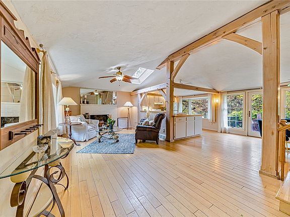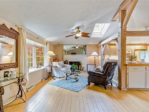 Welcome to this charming 3 bed, 2.5 bath multi-level home with a beautiful open concept living area. You will love the exposed wood beams, vaulted ceilings, skylight & wood burning fireplace. Enjoy entertaining in the chic cottage style main level full of sunlight, with a spacious kitchen and direct access to the deck. Just steps away the upper level hosts a large sunlit master bedroom with ensuite half bath, 2 spacious bedrooms & a full bath. Head downstairs from the main level to explore the large game room with Tudor accents, built-in shelving and access to the rear yard & integral garage. A few more steps down you will discover 2 bonus rooms, laundry facilities, a full bath, & utility room with additional storage. Explore the beautiful perennial landscaping, two large sheds & partially fenced rear yard. Prepare to enjoy summer days on the private rear deck or the large stone patio. All of this in your very own private retreat while just minutes from IUP, downtown Indiana & IRMC.