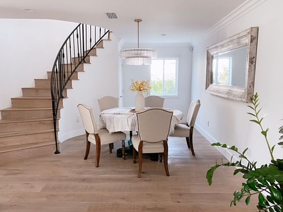 Available October 5th! Discover this stunningly renovated four-bedroom, three-bathroom home in the heart of Laguna Hills. This must-see property features a convenient main-floor bedroom and bathroom, perfect for guests or multi-generational living. The recent renovation brings a fresh, modern feel with beautiful light wood-style flooring and a bright white kitchen complete with updated appliances. Recessed lighting fills the home with a warm glow, and a full-house water filtration system adds a touch of luxury. The home is well-maintained with PEX re-piping completed a few years ago. The garage offers practicality with built-in storage cabinets and a durable epoxy floor. This ideal location is just moments away from schools, shopping on La Paz, and easy access to the 5 Freeway. Enjoy the outdoors at nearby MacKenzie Park, which features a playground and tennis courts. Don't miss this incredible opportunity to live in a beautifully updated home! For more information or to schedule a viewing, please contact Niguel Point Properties at 949.216.
