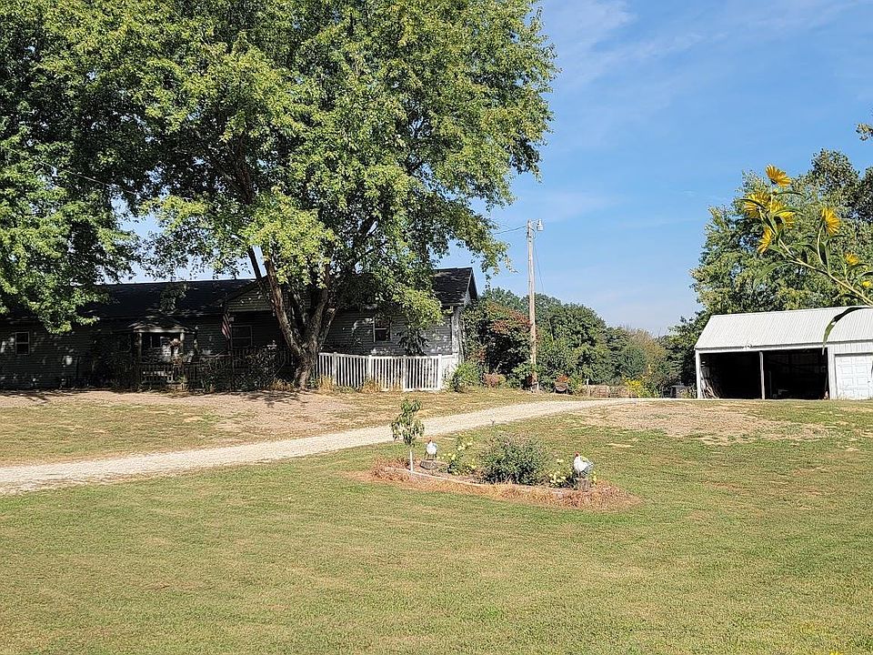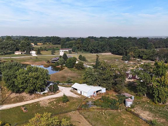 Nice pole barnBeside the pondHorse pasturesLivestock areasPlenty of garage spaceChicken shacksPorches overlooking the lake