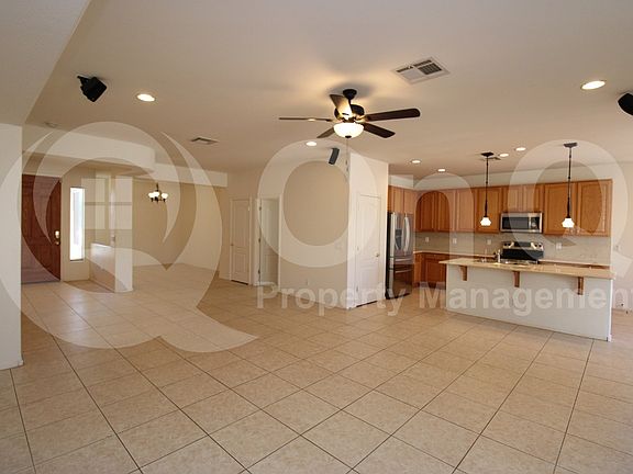 Available Now! 2,182 SQ FT! 4 bedroom, 2 bath home in Casa Grande's Mission Royale! Desirable single story floor plan. Gorgeous eat-in kitchen with included appliances, & expansive center island/breakfast bar! Breakfast nook + formal dining space. Kitchen opens to spacious family room, great for entertaining! Neutral interior with tile flooring throughout. Split bedroom floor plan offers 4 generously sized bedrooms + flexible den space! Den makes great home office/bonus room. Primary suite with full bath + walk-in closet! Secondary bedrooms each with optimal privacy. Blinds + ceiling fans! Laundry room with included washer/dryer. Enjoy a low up keep backyard with covered patio, & extended pavers! 3 car garage. Mission Royale is a desirable community offering community pool, playgrounds, sports courts, & biking/walking trails! Great Casa Grande location with easy I-10 access.