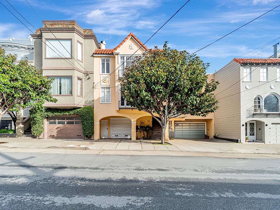 You'll love this 2-bedroom, 2-bathroom classic Cow Hollow Spanish/Mediterranean-style flat built circa 1939 with period design and details. The home is newly painted and features a master suite, two full bathrooms, formal living room with fireplace, dining room, intricate moldings, high ceilings and parquet hardwood floors. The remodeled kitchen features high-end appliances. The roof deck with beautiful 360 degree views (shared with one other unit) features wide-angle views of Bay, Marin, the Golden Gate Bridge, Palace of Fine Arts, Coit Tower, Alcatraz, and Pacific Heights. The garage has 2-car parking (tandem) and abundant storage areas! Tranquil, well-kept backyard (shared with one other unit) features mature trees, landscaping and patio area. The central location is within walking distance of Chestnut, Fillmore and Union Streets, the Presidio, Marina Green, Golden Gate Bridge, Chrissy Field and near public transportation/tech buses!