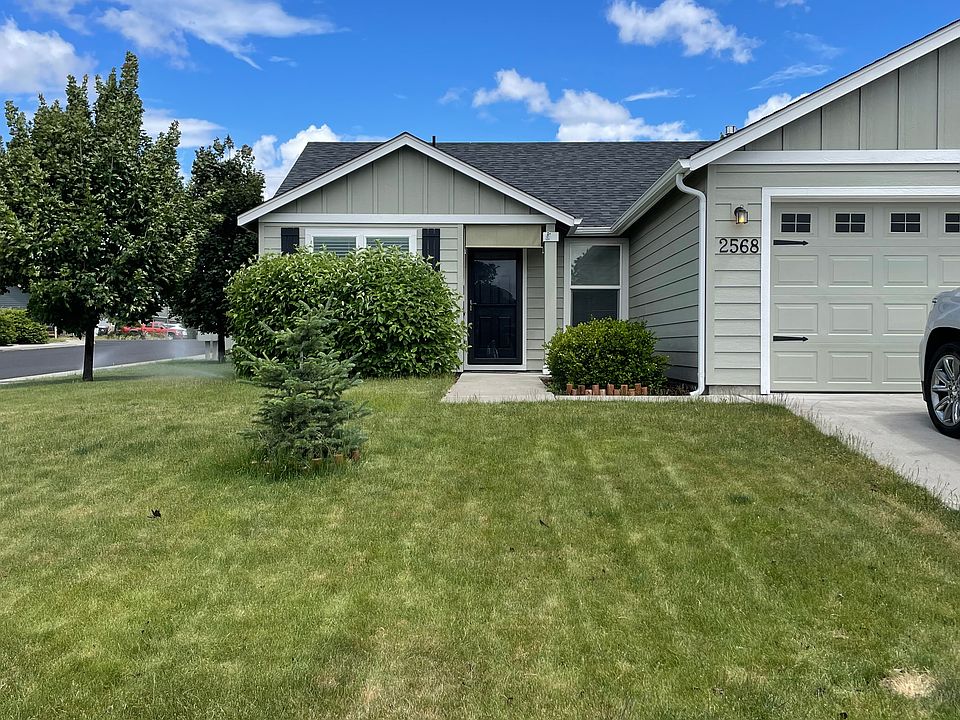 Great neighborhood, walking distance to neighborhood park. Two car garage. Private back patio. New paint throughout. Washer/dryer included. AC, central heat. Owner pays for seasonal lawn maintenance, water/sewer. Corner lot in quiet neighborhood. Comfortable home.