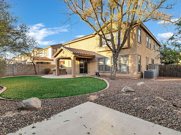 Welcome to this exceptional 5-bedroom, 3-bath home in the desirable Desert Oasis community. Offering over 3,800 sq. ft. of living space, this home combines comfort, style, and energy efficiency. The open-concept layout features soaring ceilings, abundant natural light, and elegant living and dining areas perfect for entertaining. The gourmet kitchen flows seamlessly into the great room for easy gatherings. A downstairs bedroom and full bath provide an ideal setup for guests or a home office. Upstairs, the spacious primary suite offers dual sinks, a soaking tub, and a walk-in shower for your private retreat. Enjoy Arizona living at its best in this beautiful, energy-efficient home close to parks, schools, and shopping.