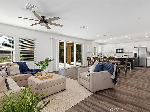 Welcome to 2569 Pasture Glen, nestled in the exclusive gated community of Oak Creek—an intimate enclave of just 64 homes where opportunities to buy are rare. This beautifully designed single-story residence offers 2,389 square feet of stylish living space with 3 bedrooms, 2.5 bathrooms, and a flexible room currently used as an office/workout space that could easily be converted into a 4th bedroom. Thoughtful design meets comfortable living with hard surface, wood-look flooring throughout and seamless indoor-outdoor flow via a 3-panel sliding glass door that opens to a covered patio—perfect for soaking in Escondido’s year-round sunshine. Set on a private 10,019 square foot lot with no rear neighbors, there’s ample room to design your dream backyard or future pool oasis. The chef’s kitchen features a large quartz island with seating, stainless steel appliances, and abundant counter space. The spacious primary suite is a true retreat with a spa-like bath boasting custom tile flooring, a soaking tub, glass-enclosed shower, dual sinks with a separate vanity, and a massive walk-in closet. Additional features include owned solar, a 3-car garage, and modern finishes throughout. Directly across from the expansive 346-acre Felicita Park, residents enjoy access to scenic trails, picnic areas, and natural creekside beauty. With quick access to the 15 freeway and nearby shopping, this home blends privacy, luxury, and convenience in one unbeatable location.