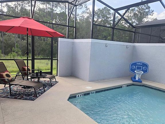 Best priced townhome with conservation views. This 4 bedroom, 3 bath townhome is located in the highly desired Storey Lake Resort. The home features a modern open layout with a fully equipped kitchen, spacious living and dining areas, and a private screened patio with pool. The first floor offers a guest bedroom and full bath, while upstairs includes a primary suite with ensuite bath and walk in closet plus two themed bedrooms designed for family enjoyment. Resort amenities include a clubhouse, pool, lazy river, splash pad, tiki bar, fitness center, spa, playground, mini golf, and sports courts. The property sleeps up to twelve guests, has an in unit washer and dryer, plenty of parking, and high speed internet. Conveniently located near Disney, Universal, shopping, dining, and major highways, this home is turn key ready and an excellent opportunity for vacation or investment use.