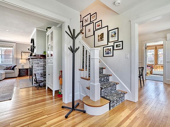 Beautifully situated, move-in-ready Craftsman home. The curb appeal and architectural design are immediate draws. A spacious wrap-around porch with ceiling fan, perfect for summer evenings. Large open foyer welcomes you. Gorgeous LR features a charming fireplace, rich moldings, and hardwood floors. Open-concept kitchen offers white cabinetry, stainless steel appliances, island, flowing seamlessly into the oversized dining room ideal for entertaining. A first-floor playroom and half bath complete the main level. Upstairs you’ll find three generously sized bedrooms with excellent closet space and spacious full bath. The basement is equipped with a mini-split for heating and cooling, offering the ceiling height and incredible potential for finishing. Enjoy outdoor living with a flat, spacious yard, back deck, and two-car garage. Located on a tree-lined street, steps to Melrose Common, Winthrop School, Mount Hood GC, busline & highways. Don't miss this gem!