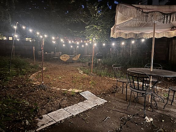 Oversized Studio with Private Yard - 257 Adelphi St, Clinton Hill Spacious and full of charm, this oversized Clinton Hill studio features exposed brick, wood beams, and a decorative fireplace. The updated kitchen has stainless steel appliances and a large window overlooking your massive private backyard - perfect for entertaining or relaxing. Beautiful hardwood floors, modern bath, in-unit washer/dryer, and an unbeatable location near Fort Greene Park and the C/G trains.