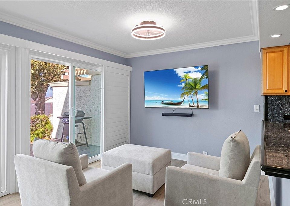 Welcome to your meticulously upgraded beach home in the sought after community of Presidential Heights. This stunning home offers 2 bedrooms and 1 1/2 bathrooms with incredible oceans views that are sure to sweep you off your feet. This light-filled home features a classic layout with designer touches throughout. The living area boasts wide-plank composite flooring and modern lighting. Adjacent, the dining space flows seamlessly into the updated kitchen which includes wood cabinetry, quartz countertops, a breakfast bar, eye-catching tile backsplash and brand-new appliances. Enjoy the panoramic ocean views, spectacular sunsets and the cool ocean breeze from the comfort of your living room and newly renovated private patio, offering the perfect backdrop for relaxing or entertaining. As you walk up the stairway, in the master bedroom you experience an unencumbered ocean view. The spacious primary and guest bedroom offers hilltop views. The full bathroom upstairs offers a walk-in shower, spa jacuzzi tub, vanity, mirror and new flooring. Updates throughout the home include new dual pane windows, wood shutters throughout, LVP flooring, lighting throughout on dimmer switches, accent tile in kitchen, baseboards, tankless water heater, new roof on garage, exterior patio cover, travertine tile on exterior patio, refrigerator, oven, brand new washer and gas dryer, ceiling fans and much more. Also included is an attached one-car garage offering parking, private entry gate, and access to a well-maintained community. Additionally, this home is just quick bike ride to world-class surfing at Trestles, golfing at the Municipal Golf Course, shopping at the popular & local Primos market and classy downtown near the San Clemente Pier, hiking/biking trails, close to Concordia Elementary and the 2.5 mile beach trail, this home offers all the fun lifestyle aspects south San Clemente has to offer.
