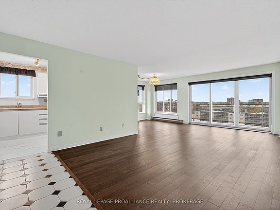 Welcome to 259 Bath Rd, Unit 1006! This bright and spacious 10th-floor condo offers comfortable, low-maintenance living with sweeping views of Kingston. The unit features two bedrooms, including a primary suite with a three-piece ensuite featuring a stand-up shower and two double closets. A four-piece main bathroom and a large in-unit storage room provide extra convenience.The kitchen is equipped with a fridge, stove, dishwasher, and pantry, offering practical space with classic cabinetry and durable vinyl flooring. The tiled hallway leads to a generous dining area and a bright living room with laminate flooring, opening to a private wrap-around balcony perfect for relaxing and enjoying the view. Updated windows and efficient electric baseboard heating add to your comfort.Residents of the building enjoy fantastic amenities, including two swimming pools, an exercise room, library, and workshop. Move-in ready with plenty of potential to make it your own, this condo combines space, comfort, and convenience in a great central location.