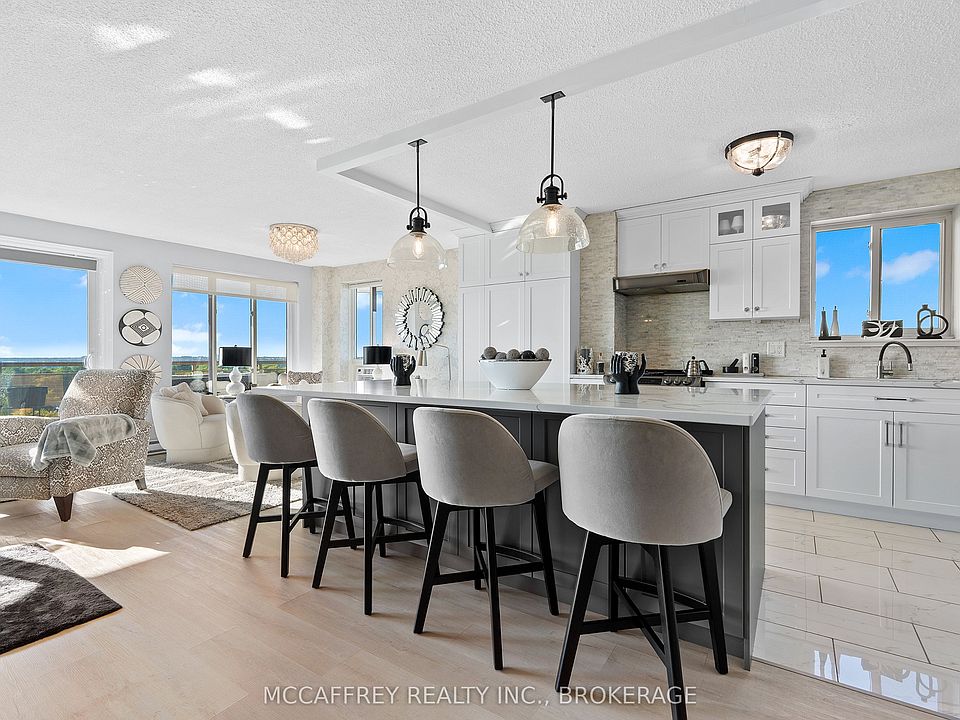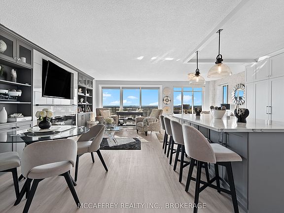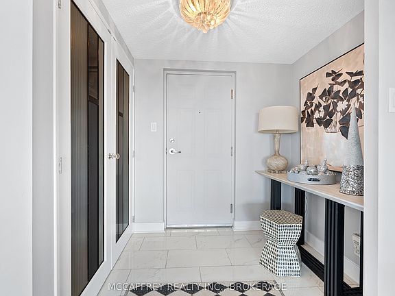 Beautifully nestled amidst the charming Champlain Towers, minutes away from downtown Kingston, is this spectacularly renovated 2-bedroom condo unit. Stepping into Unit 1105 is an entirely otherworldly experience. Completely renovated in 2023, this unit is strikingly beautiful. Your breath will catch as you take in the influx of natural light streaming in through the many windows and patio doors, playing off the glossy white tile flooring and magnifying the unit's overall allure. A spacious kitchen, outfitted with Quartz counters and a central island, awaits your culinary endeavors. The cozy living room, complemented by an electric fireplace, creates an ambiance that soothes the soul. Step outside onto your private wrap-around terrace to bask in the golden rays of the sun or to enjoy the awe-inspiring sunsets. The home features pantry/storage space, a luxurious 3 pc bathroom with a welcoming soaker tub, a generously sized bedroom, and a Primary bedroom boasting a walk-in closet and a 3 pc ensuite with a glass shower. Living here isn't just about owning a home; it's about embracing a lifestyle. Unrivaled amenities include a roof top entertainment space where you can BBQ your favourite meals, jump into the pool on warmer days, enjoy a walk on the rubber walking path around the top of the building, sit under the Pergola, or catch up with friends around the gas fire. Within the building, residents can enjoy an indoor pool, a sauna, a fitness room, a games room, and a spacious common room, decotated by Reid and Simion, prefect for hosting large gatherings. Every floor boasts its own laundry room for residents' convenience. This unit also comes with a secure underground parking spot, rendering it a phenomenal possession. Other amenities include: Car Wash Facility, Building tool room for signing tools out, and the Owls' nest on rooftop perfect for games night or taking in amzing views. The richness of this property truly encapsulates the essence of luxury living.