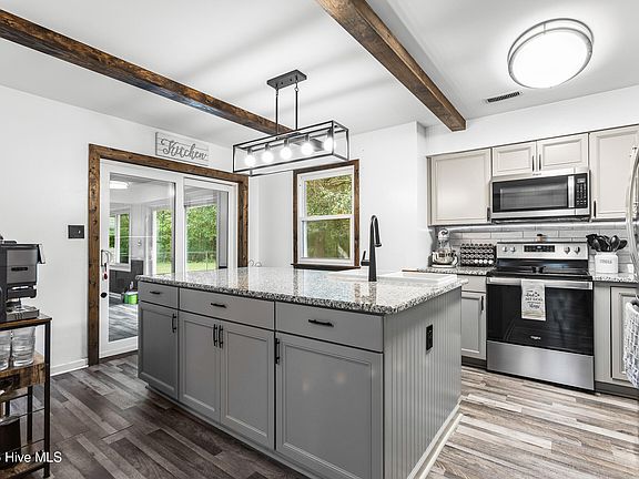 Tucked into a cul-de-sac in the homey neighborhood of Raintree, you'll find a beautiful spacious home with stunning updates for an awesome price! Walking inside, the living room features vaulted ceilings and a whitewashed brick wood burning fireplace leading into a showstopper kitchen with a massive island topped with granite countertops and a farmhouse sink. Off the kitchen is a sunroom with high ceilings leading out into the fenced in backyard with a new deck. Downstairs, you'll find 2 bedrooms before leading upstairs to a modern loft style primary suite. The best part? The industrial farmhouse style bathroom featuring a MASSIVE tile shower with a rainfall shower head and bench seating. Both closets provide ample room for storage, no fighting for space! NO HOA, NO city taxes, and only 10 minutes from Target? You're sold. Call your Realtor to schedule a showing today!