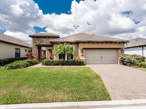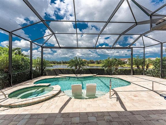 Experience unmatched luxury in this stunning custom-built Neal Signature pool home, perfectly positioned to capture breathtaking water views from nearly every angle. This elegant 3-bedroom, 3.5-bath residence features en suite bathrooms for every bedroom, a private in-law suite with separate entry, soaring 12-foot tray ceilings in the main living area, a custom built-in bookcase, 10-foot ceilings throughout, and a gourmet kitchen with built-in ovens, crown molding, and upgraded solid-core doors. The owner’s suite offers dual walk-in closets and a spa-inspired bath with an expansive walk-in shower, while a dedicated office provides the ideal workspace. The expansive lanai is an entertainer’s dream with an outdoor kitchen, panoramic screen enclosure, and a sparkling pool and spa overlooking the tranquil lake, where every sunset feels like a private show. Built with hurricane-impact windows and superior craftsmanship, this home blends strength, efficiency, and elegance, located in Aria—a gated Neal Signature luxury community offering a clubhouse, resort-style pool, pickleball courts, and a state-of-the-art fitness center. This immaculate home combines sophistication, comfort, and the serenity of a beautiful water view—a truly exceptional opportunity to make it yours.