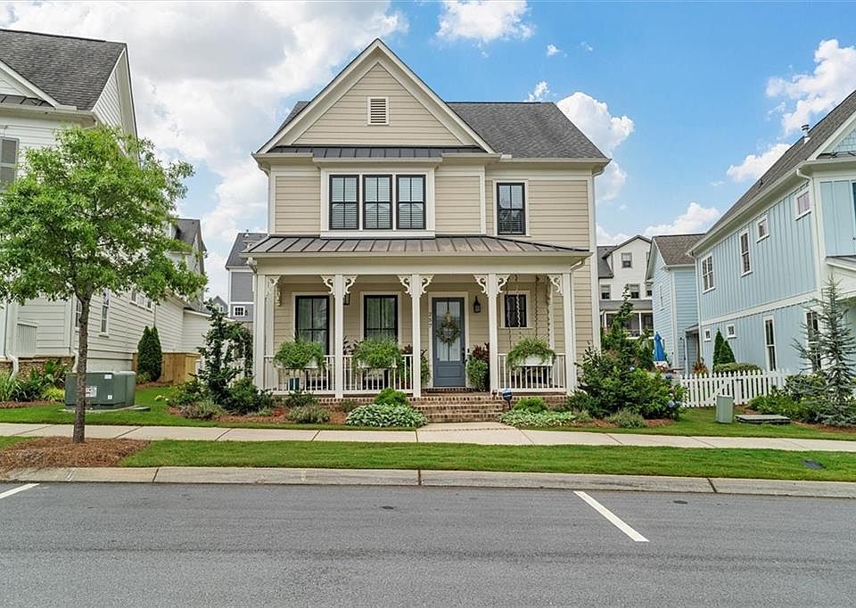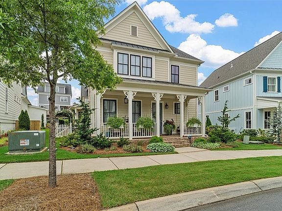 In the heart of Woodstock’s most well-known and sought after neighborhood is a one-of-a-kind opportunity- a master-on-main, single-family home with a generously fenced yard. No other plans at South on Main like this are currently available for purchase and no new plans like this are anticipated in the development. This Victorian cottage welcomes with its generous oversized front porch and charming details. The ample foyer is flanked by a quiet study and classic light filled stairway, and leads to an open airy living, kitchen, and dining area all with 10’ ceilings, upscale moldings, and views to the covered courtyard. The chef’s kitchen features SS appliances, high end cabinetry, and a large island open to the family room with fireplace and built ins. Directly off the living area is a generous patio with skylights and adjacent grilling area, and a fenced side lawn. The convenient, but private owner suite on the main floor adjoins a spa-like bath with dual vanities, oversized shower with bench, and free-standing soaking tub, as well as a large custom walk-in closet. Upstairs is a family-friendly loft/media area plus 3 bedrooms and 2 baths, and a large unfinished storage area over the garage. This home will be immediately appreciated for its thoughtful design and details inside and out, as well as its abundance of windows- a Wieland trademark. The home features new hard wood floors on both levels. Come experience this rare find of convenient master-on-main living in Woodstock’s most desirable neighborhoods!