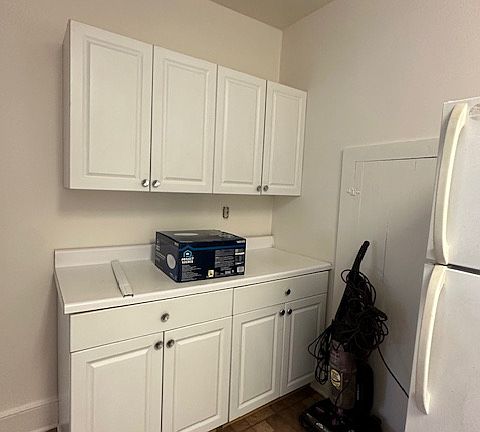 Freshly painted and very spacious one bedroom, one bath 3rd floor apartment located in quiet multi-unit apartment building. The kitchen eat-in kitchen is quite spacious and has a gas stove and refrigerator. Old meets new with the original ceramic farmhouse style sink and met cabinets. There are additional newer cabinets added for extra counter space and room for dishes. There is a built-in pantry in the kitchen and linoleum flooring. The living room is spacious and has a ceiling fan and coat closet. The bedroom also has a ceiling fan with one double closet and another walk-in closet with a light. The bathroom has a full tub/shower combination, toilet, vanity and sink and medicine cabinet. There is a small linen closet built into the wall. The is a grand entry area when you enter this apartment that can be decorated nicely. This is a huge one-bedroom apartment! There is a coin-operated laundry room in the building. Plenty of off-street parking which is a hard find on Main Street in Westminster!!